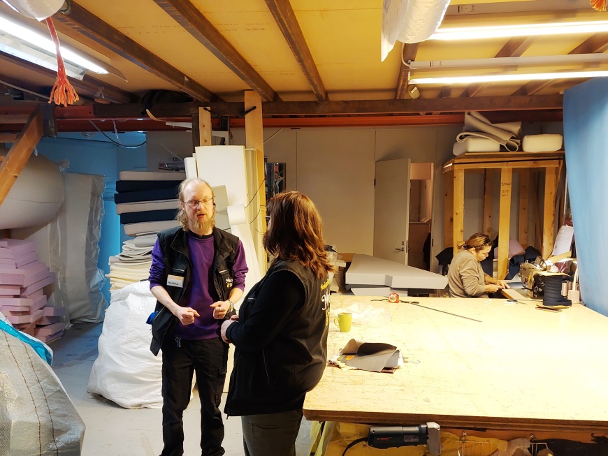 Pääsin kurkistamaan ”kulissien taakse” vaahtomuovin leikkaus- ja ompelupalveluun, joka toimii erillisessä rakennuksessa Keravan Muovin ja Lelun kiinteistöllä.
