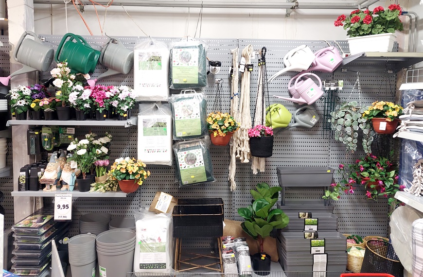 Puolitoista vuotta sitten aloittanut Keravan Muovin ja Lelun myymälänhoitaja Pia Sirainen kertoo, että esillepanoon satsataan sesonkien mukaan. Tämä näkyy esimerkiksi kevättuotteissa, kuten hallaharsoissa, hyttysverkoissa, kukkaruukuissa ja valtavassa valikoimassa vesi- ja polttoainekanistereita.