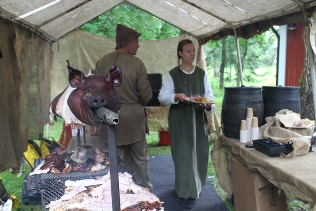 Heti tapahtuma-alueelle, pappilan puistoon, saavuttuamme jäimme seuraamaan keskiaikaista kamppailutekniikkaopetusta. Lapsilla oli mahdollisuus tutustua mm. miekkailuun ja jousiammuntaan.