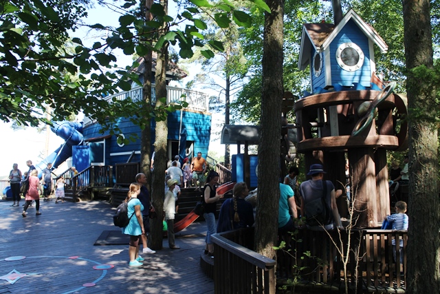 Saaren uloimmasta kolkasta löytyi Muumipapan laiva hurjaakin hurjemman liukumäen kera, mikä ei tosin ihan pienimmille lapsille soveltunut. Harmitus ei kuitenkaan kestänyt kauaa kun huomasimme, että ihan laivan vierestä löytyi perinteisempiä leikkitelineitä. Se oli hyvä juttu!