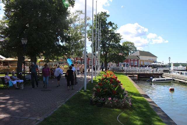 Kun saavuimme Långnäsin satamaan, kello oli jo yhdeksän. Lähdimme ajamaan kauniin ilta-auringon loisteessa kohti Maarianhaminan keskustaa, jossa odotti ensimmäinen majapaikkamme, Gröna Uddenin leirintäalue.