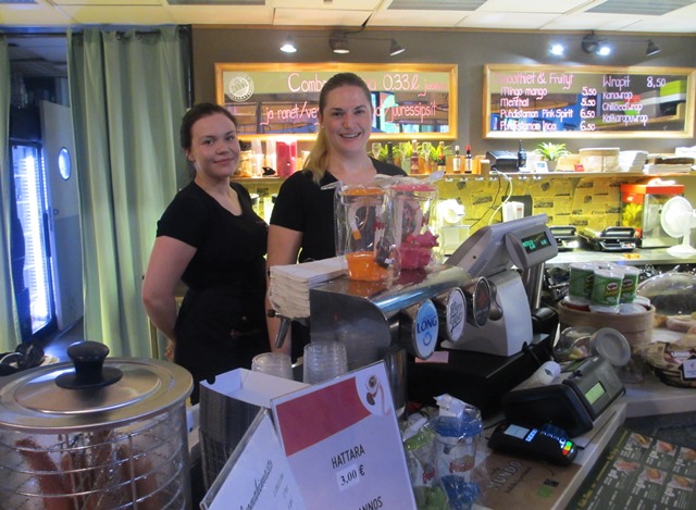 - Flamingo Spa Cafen ystävälliset työntekijät Elise (vas.) ja vuoropäällikkö Jasmin. Kuva: KivaaTekemistä.fi