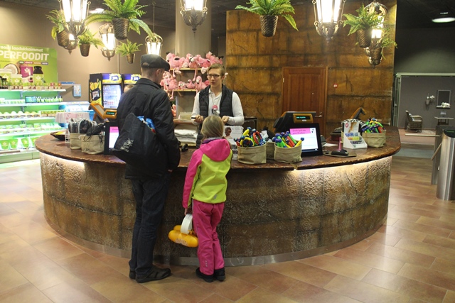 Vesipuiston ja ruokailun jälkeen suuntasimme Flamingon sisäseikkailupuisto Naurusaareen. Naurusaaren sisäänkäynnillä oli päiväkodin porttia muistuttava ovi. Tunnelma oli melko rauhallinen, mikä johtui mitä luultavimmin siitä, että oli arkipäivä. Näin tuumasi myös kassalla oleva Kiia, jonka mukaan pe-su ovat selkeästi vilkkaampia. Ainakin meidän lapset olivat siitä mielissään, koska mihinkään ei tarvinnut jonottaa.