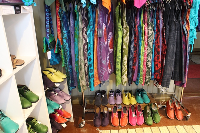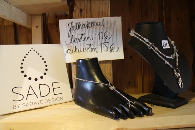 Kesämakasiinien yrittäjistä tapasimme Ulla-Maija Pastisen, joka kertoi meille hänen ja poikansa yhteisestä AAVAma -puukorumallistosta. Ulla-Maija kertoi, että putiikki on teemalla Neljä osaavaa naista Toivolassa. Esillä olivat myös Marja-Leena Tenhusen hatut, Anu Rinkisen käsin painetut tekstiilit ja Miia Suojalan viitat, ponchot ja mekot.