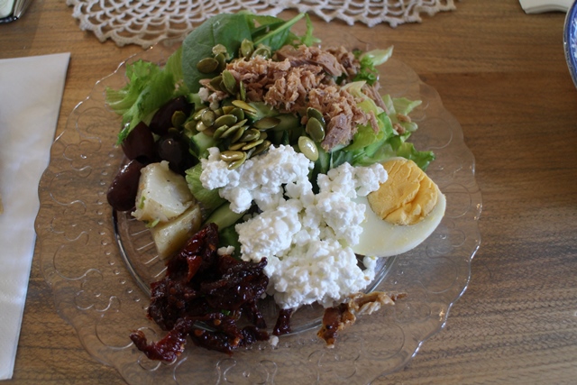 Vanhan Synnytyslaitoksen alakerrasta löytyy ihastuttava Kahvila Muisto. Kahvilassa on tarjolla monenmoista herkkua leivoksista kakkuihin ja pikkusuolaisiin. Me taltutimme nälkämme runsaalla noutopöytälounaalla. Kahvila Muistosta saa arkipäivisin myös aamiaista. ”Suosittu sunnuntaibrunssi on tarjolla syksystä kevääseen”, kertoi yrittäjä ja Toivolan Pihan aktiivi Sirpa Pii-Keinonen.
