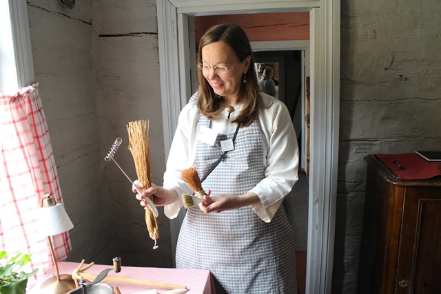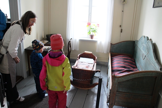 Vierailimme vaaleanpunaiseksi maalatussa Kuparisepän talossa. Museo-opas Tarja Ketola esitteli meille, millaista elämä oli 1800-luvun käsityöläisten Jyväskylässä. Lapset huomioon ottaen Tarja heitti välillä ilmaan kysymyksiä ”Tiedättekö, miksi ennen ei rakennettu huoneita yläkertaan?”, ja kyseli lapsilta, mikä mikäkin esine oli ja mihin sitä käytettiin. Tarjan ammattitaidolla ja iloisella asenteella saatiin pidettyä yllä myös lasten kiinnostus, mikä ei välttämättä museoissa aina onnistu.