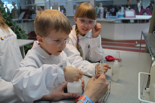 - Pikku kemistit työn touhussa. Kuvat: KivaaTekemistä.fi