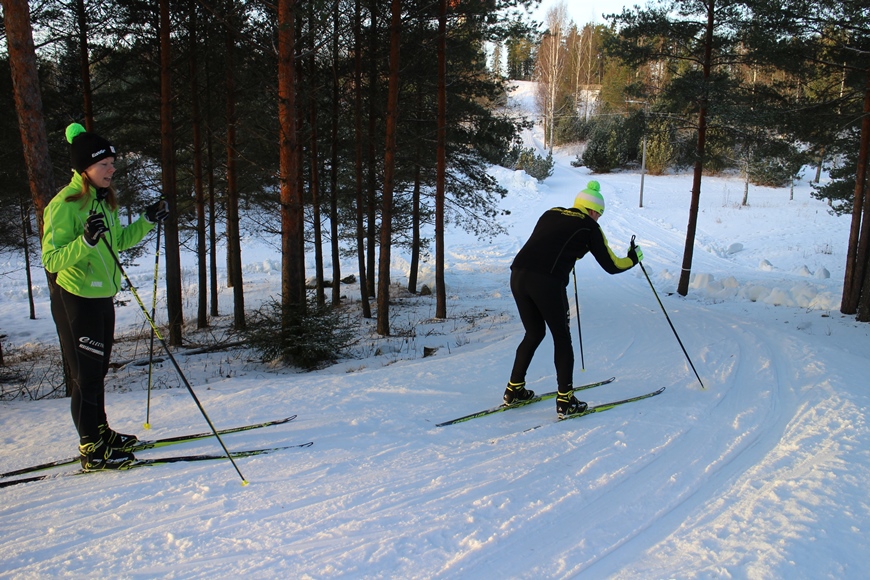 ”Tärkeintä on kuitenkin, että hiihdellään. Hiihto on monipuolista liikuntaa. Se hapettaa kroppaa ja siitä saa raitista ilmaa”, tuleva liikunnanohjaaja toistaa jämäkästi.