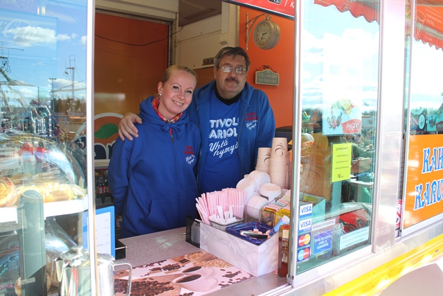 Tinna Oikarinen hoitaa mm. lipunmyyntiä ja viestintää. Ville Sariola on kasvamassa tivolinjohtajaksi isänsä jalanjäljissä. Kuva: KivaaTekemistä.fi