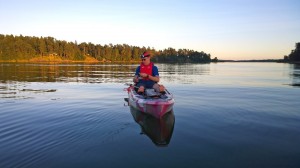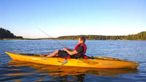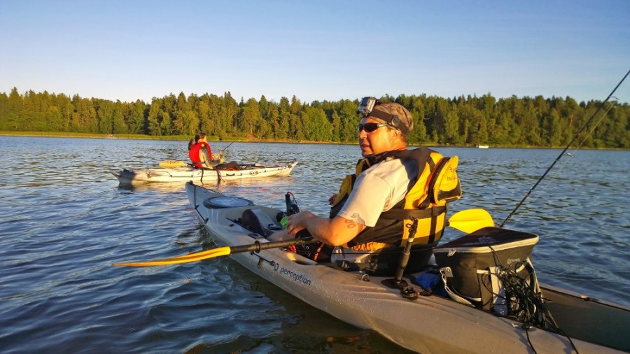 Lajina kajakkikalastus oli minulle entuudestaan ”televisiosta tuttu”. Olin nähnyt norjalaisen seikkailijan kalastavan kajakista ja muistan ajatelleeni, miten luontevalta se näytti. Samalla pohdin, miten kiikkerä kajakki pysyy pystyssä suuren kalan tempoillessa. Samaa olivat pohtineet muut testaajamme Cathy, Olga, Max ja Seppo. Olga oli aiemmin melonut kajakilla enemmänkin, Max ja Seppo puolestaan kalastaneet. Cathy ei ollut tehnyt kumpaakaan ja minä molempia vähän.