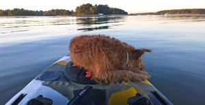 Liikkeelle lähdettäessä kajakki todellakin tuntuu tukevalta, se ei keiku eikä tunnu millään muotoa huteralta. Päätän luottaa menopeliin niin paljon, että uskallan ottaa koiran mukaan. Istuin on mukava ja sen takana molemmin puolin löytyvät vapapidikkeet. Tärkeä varuste on ankkuri, joka on käden ulottuvilla helposti laskettavissa. Peräsin lasketaan alas vapauttamalla sitä ylhäällä pitävä naru ja näin kajakkia voi ohjata jalkapedaleita käyttämällä. Jalkapedalit kannattaa ennen lähtöä säätää sopiviksi. Niissä kajakeissa, joissa ei ole pedaleita, sitä ohjataan melomalla.