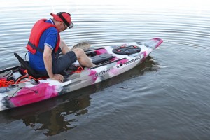 Vaan kalastuskajakki ei olekaan sama asia kuin perinteinen kajakki, vaikka sitä melotaankin samaan tapaan. Mela on usein pidempi, jotta vesi valuisi kajakin ulkopuolelle eikä melojan syliin. Ennen kaikkea se on tavallista kajakkia huomattavasti vakaampi. Tämä toki tuntuu melontaominaisuuksissa mutta mahdollistaa jopa heittokalastuksen seisaaltaan.