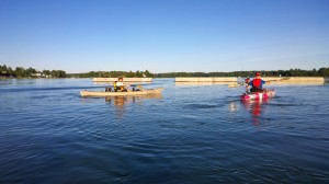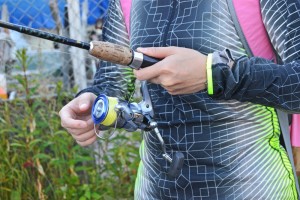 Aloitimme kuivaharjoittelulla. Kalastustapana olisi jigaus, saaliskalana kuha. Ensin harjoittelimme melan oikea asennon ja otteet, sitten oikea ote kelasta, heitto- ja kelaamisharjoitus. Jigauksessa syötti ensin heitetään, annetaan painua pohjaan, kelataan hieman ja annetaan taas pudota eli tavallaan pompotellaan syöttiä pohjan tuntumassa. Vielä aivan kajakin vieressä nykäistään muutaman kerran, jotta syöttiä mahdollisesti seuraava kala vielä saisi mahdollisuuden käydä kiinni.