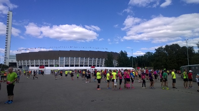 Päivä oli todella lämmin ja harmittelin alkumatkasta, etten ollut ottanut kisaan mukaan omaa juomapulloa. Joillakin näin vyötärölle kiinnitettyjä pulloja ja muutamalla oli jopa juomareppu. Kilpailijoita muistutettiin vielä vartti ennen lähtöä nesteen nauttimisesta ja siitä, että viimeiset hetket ennen lähtöä olisivat maratoonareiden mukaan ne tärkeimmät nesteytyksen kannalta. Juoksun aikana neste ei poistu enää virtsan mukana, vaan erittyy mm. hikenä pois kisan aikana.